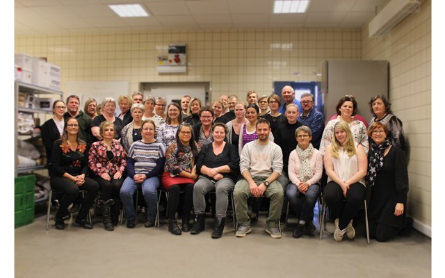 er vi ca. 60 faste medarbejdere med forskellige funktioner i køkkenet, administrationen og distributionen.